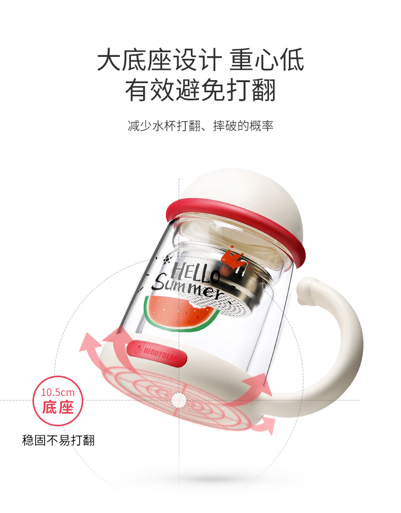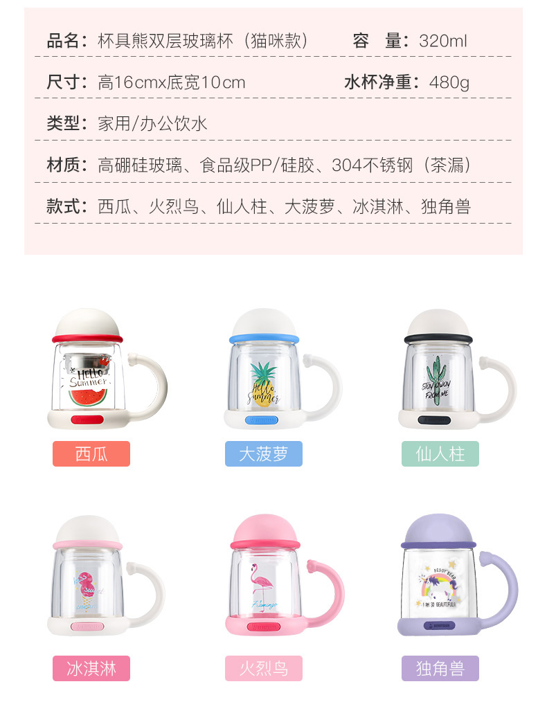 【授权商品】杯具熊双层耐高温玻璃杯可爱猫咪杯320ml 菠萝