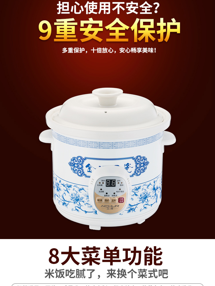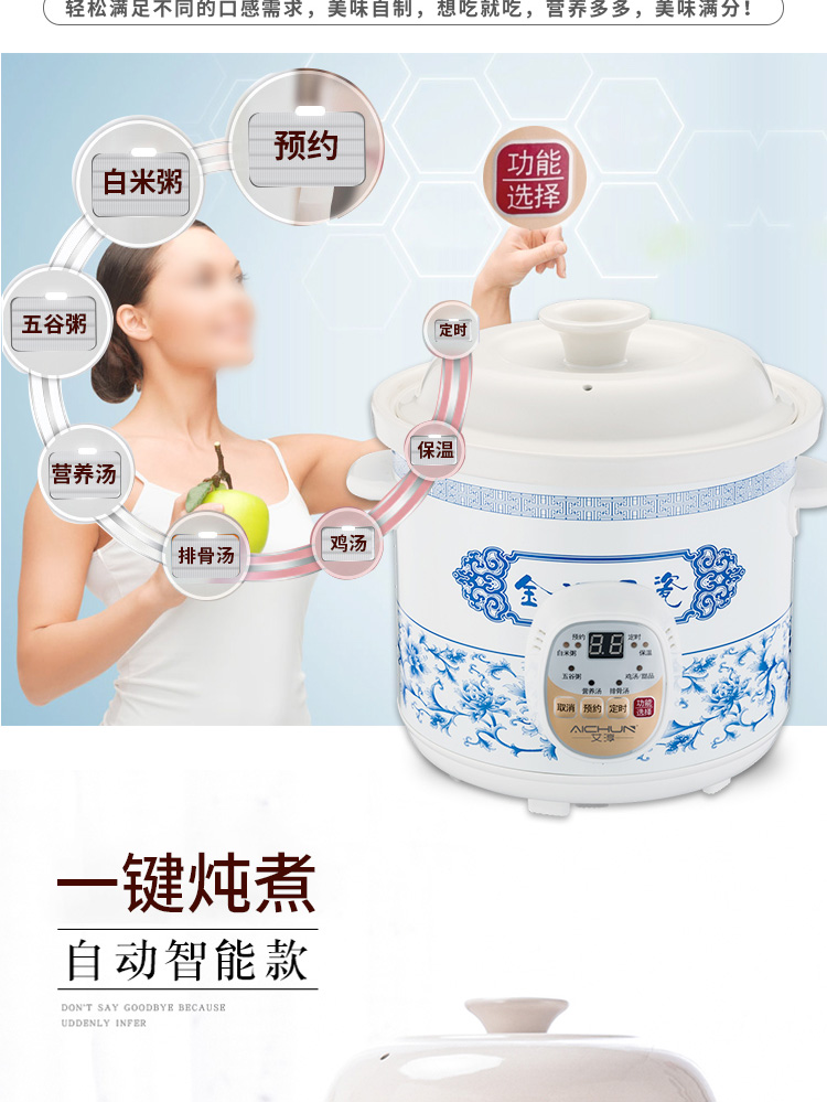 您所在的位置:首页 > 家用电器  > 厨房小电 > 电炖锅  > 艾淳(AICHUN)电炖锅 电炖盅 隔水炖陶瓷煮粥煲汤锅燕窝炖盅家用全自动可预约