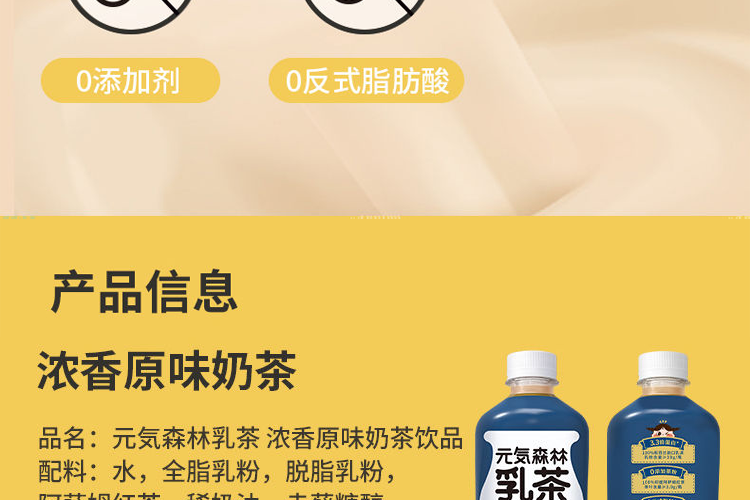 元気森林0蔗糖奶茶 阿萨姆网红牛乳茶低脂低卡 原味