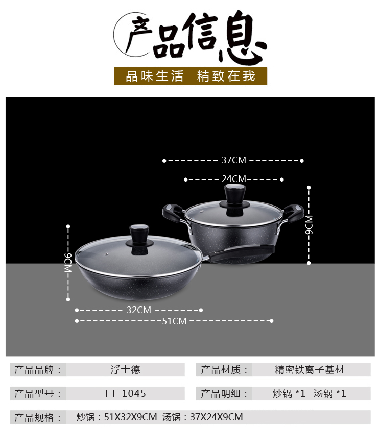 浮士德 黑金刚 麦饭石两件套 FT-1045(炒锅+汤锅)