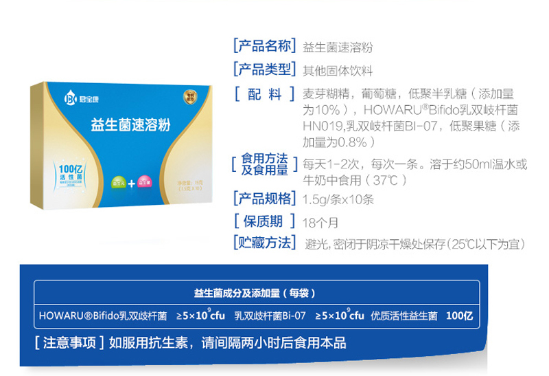 君宝康益生菌速溶粉15g