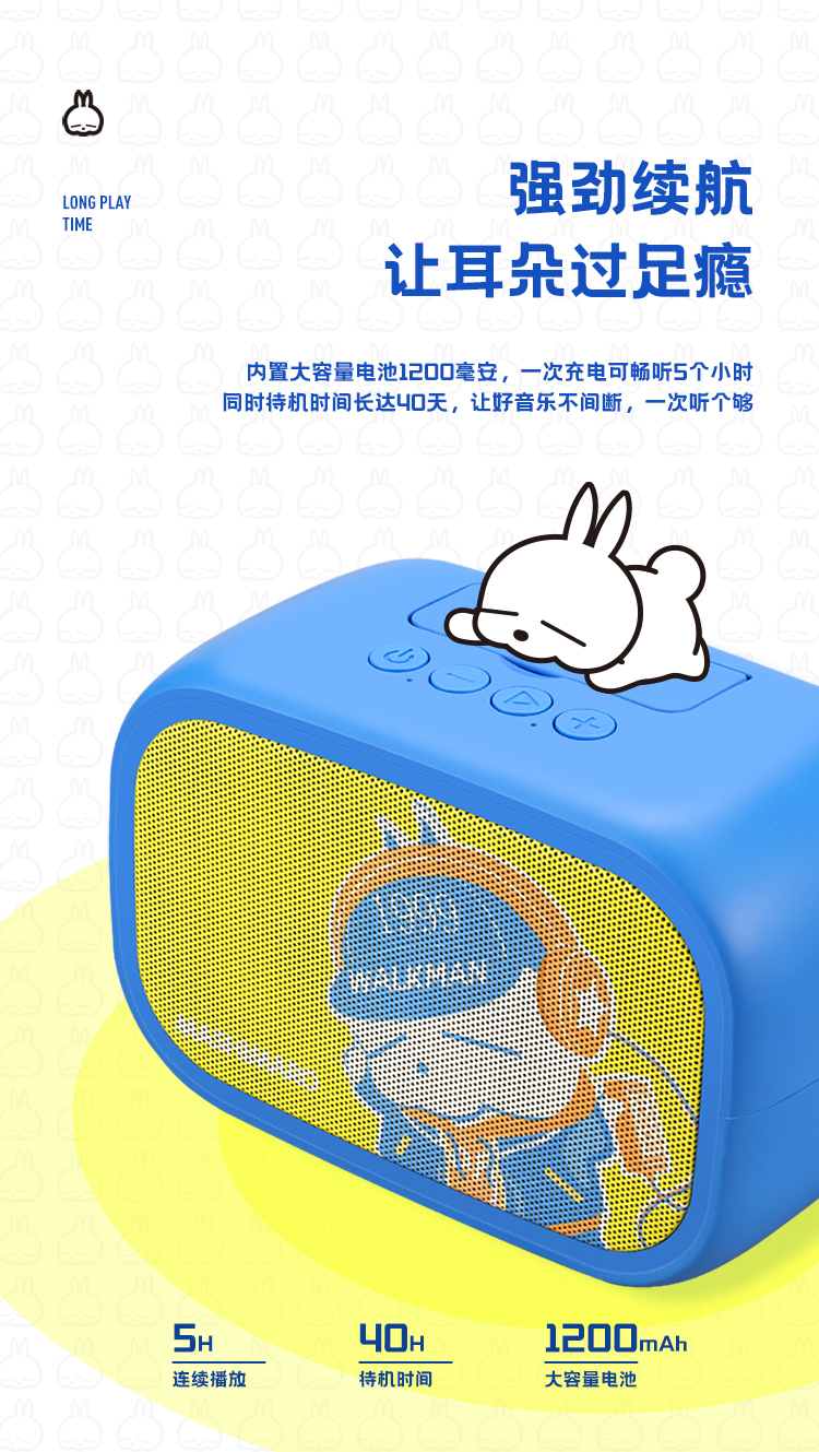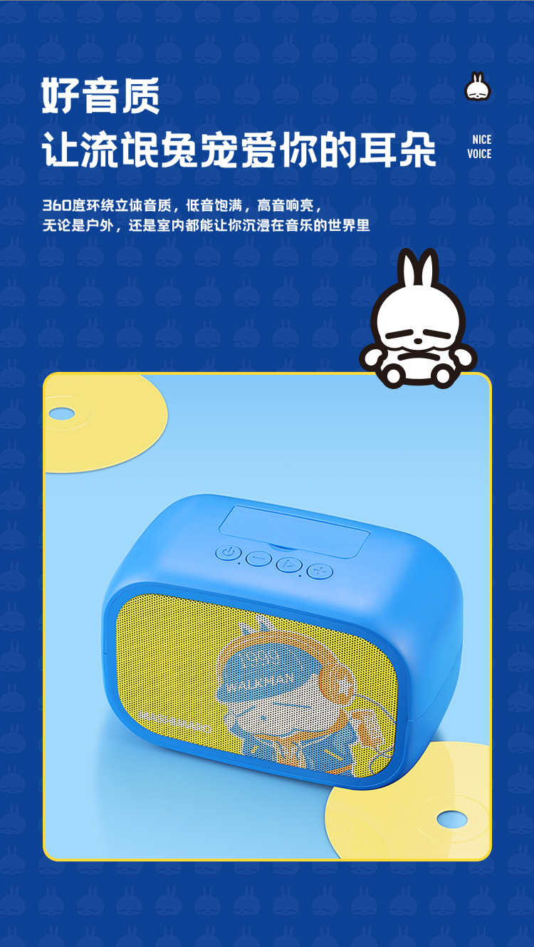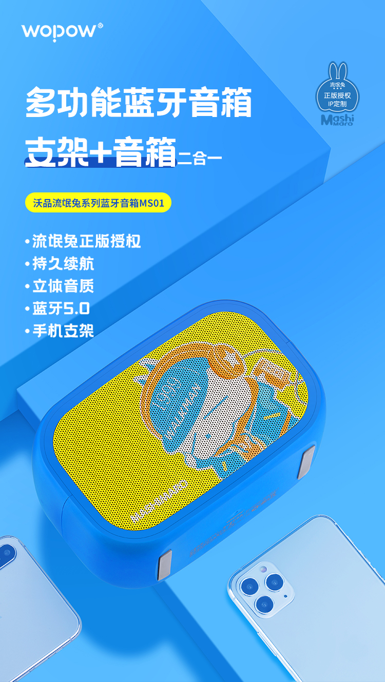 【授权商品】中国沃品(WOPOW) 流氓兔联名款系列蓝牙音箱MS01 黄蓝色