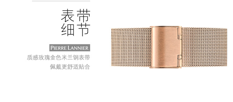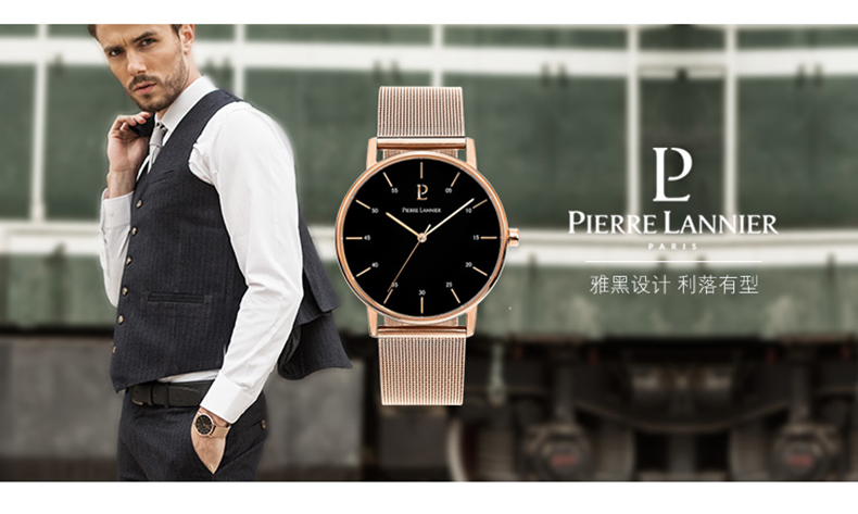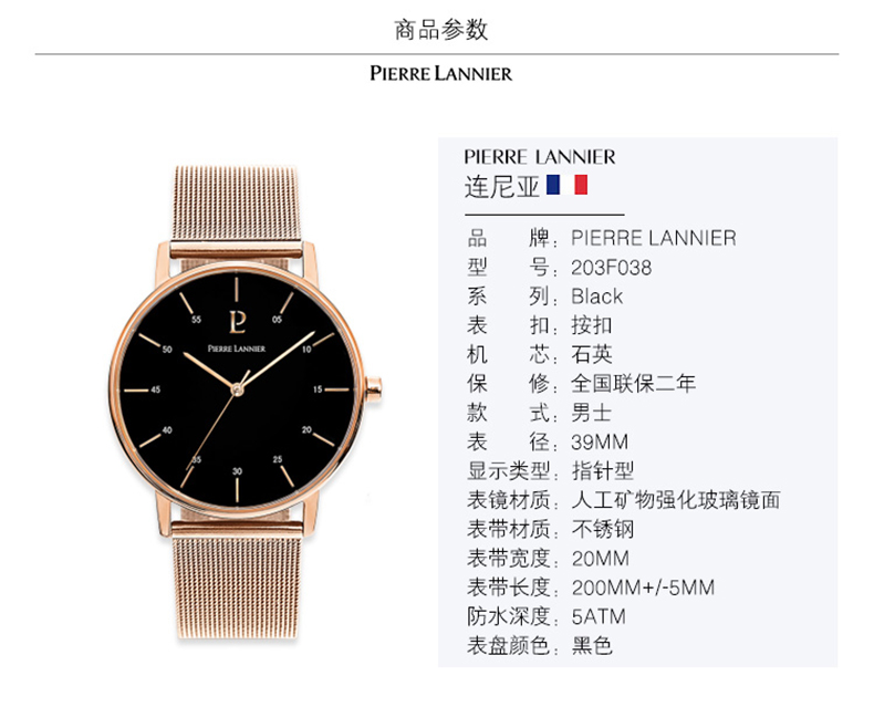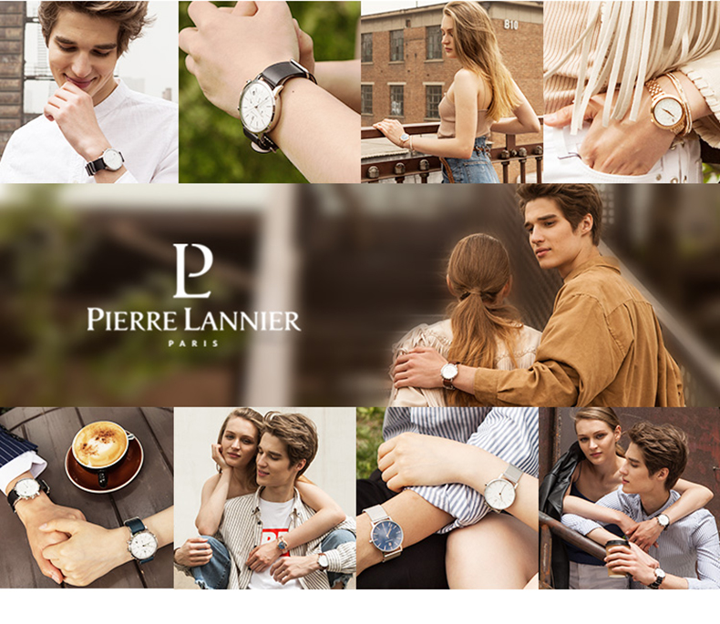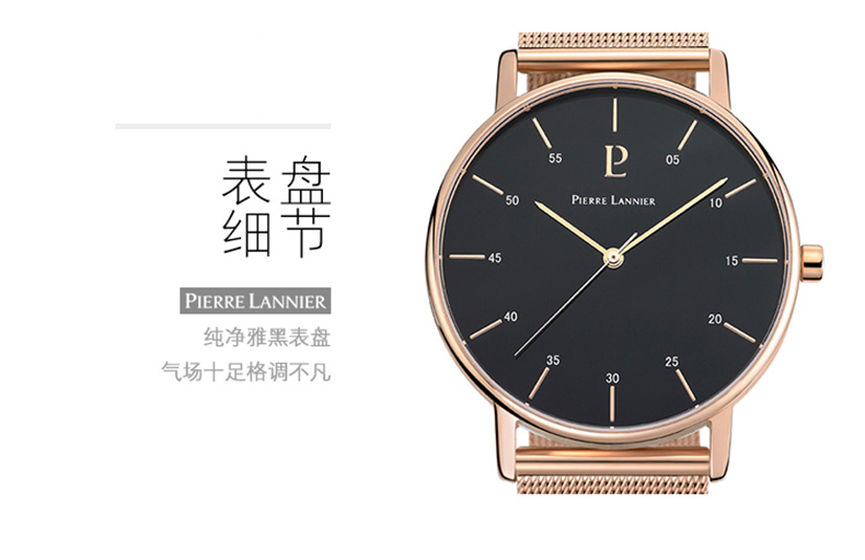 法国 连尼亚 (PIERRE LANNIER )时尚手表 简约休闲情侣对表黑盘金色钢带203F038