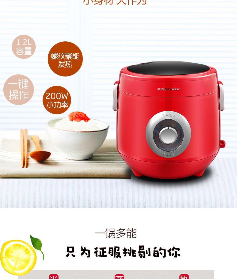 您所在的位置:首页 > 家用电器  > 厨房小电 > 电饭煲  > 荣事达QQ煲RX-1202M