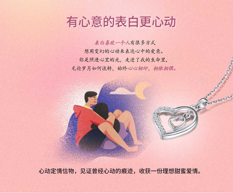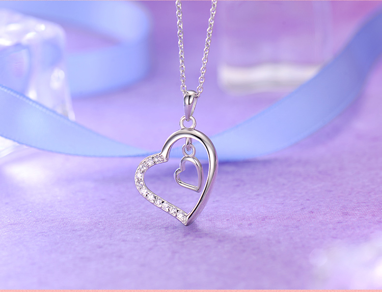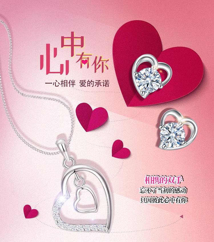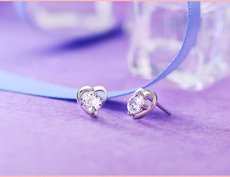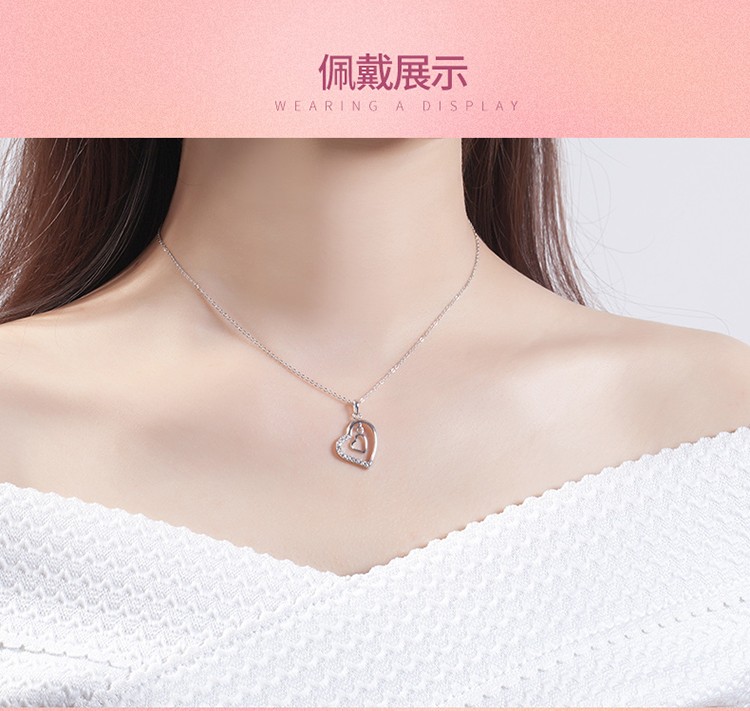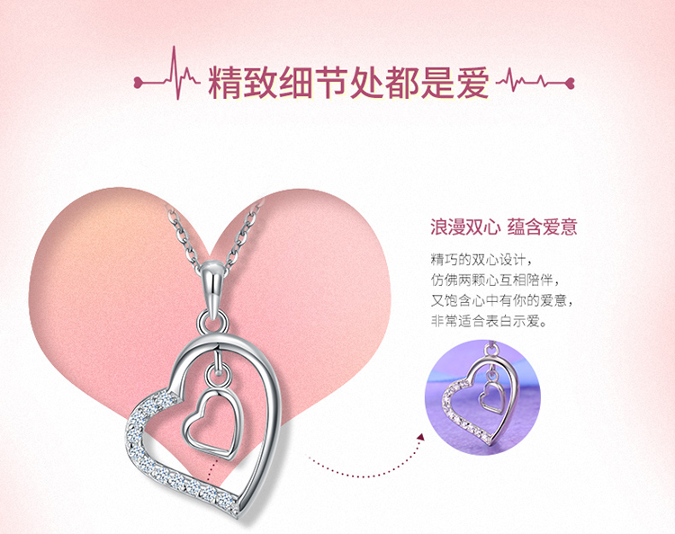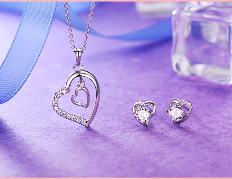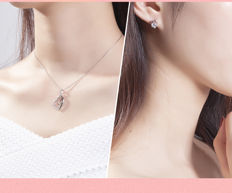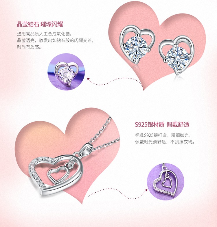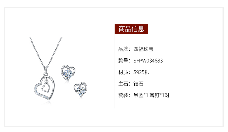 四福珠宝 S925银锆石套装简约气质时尚心形吊坠耳钉套装