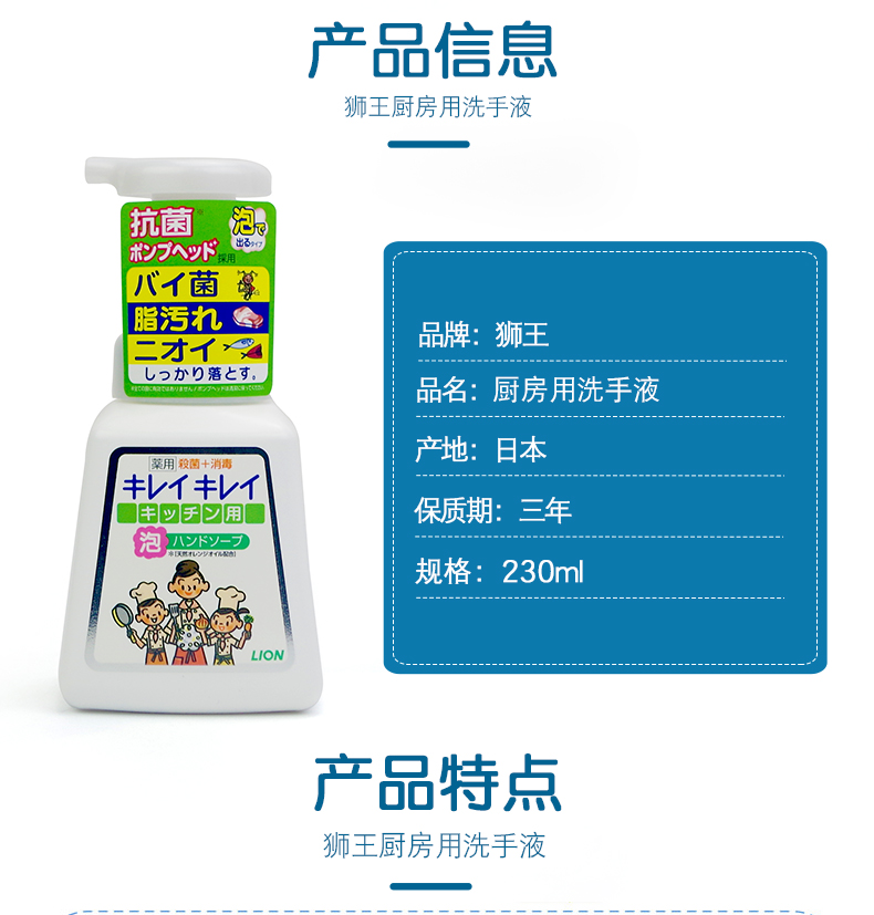 日本狮王厨房泡沫洗手液 230ml
