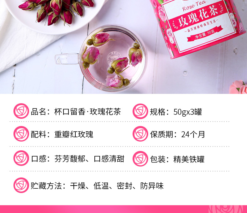 您所在的位置:首页 > 休闲食品  > 茗茶 > 花果茶  > 杯口留香 玫瑰花茶50g*3罐