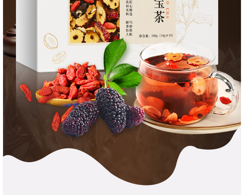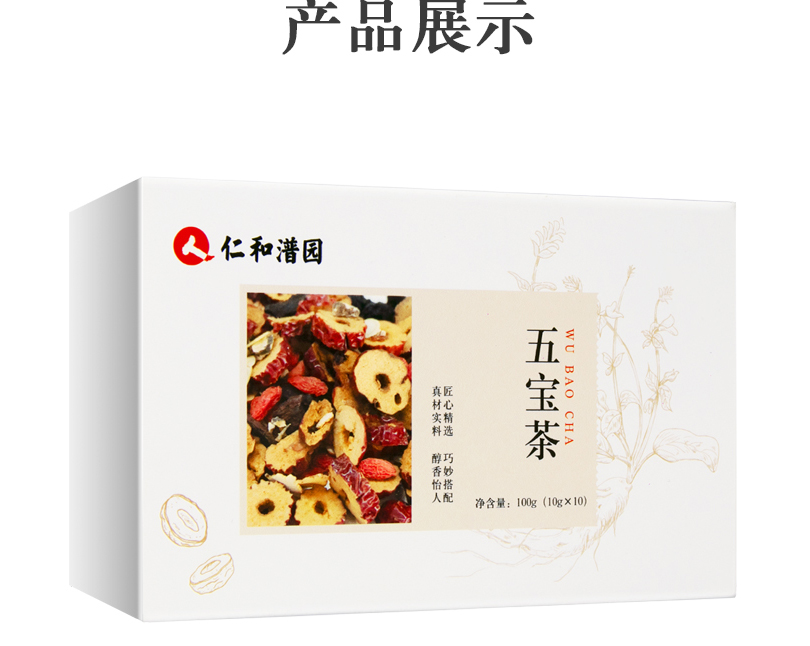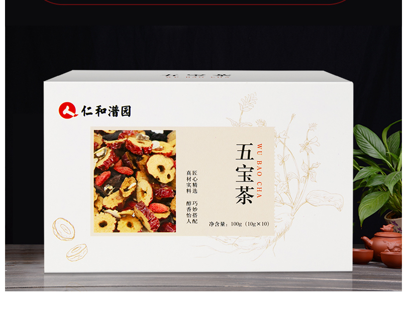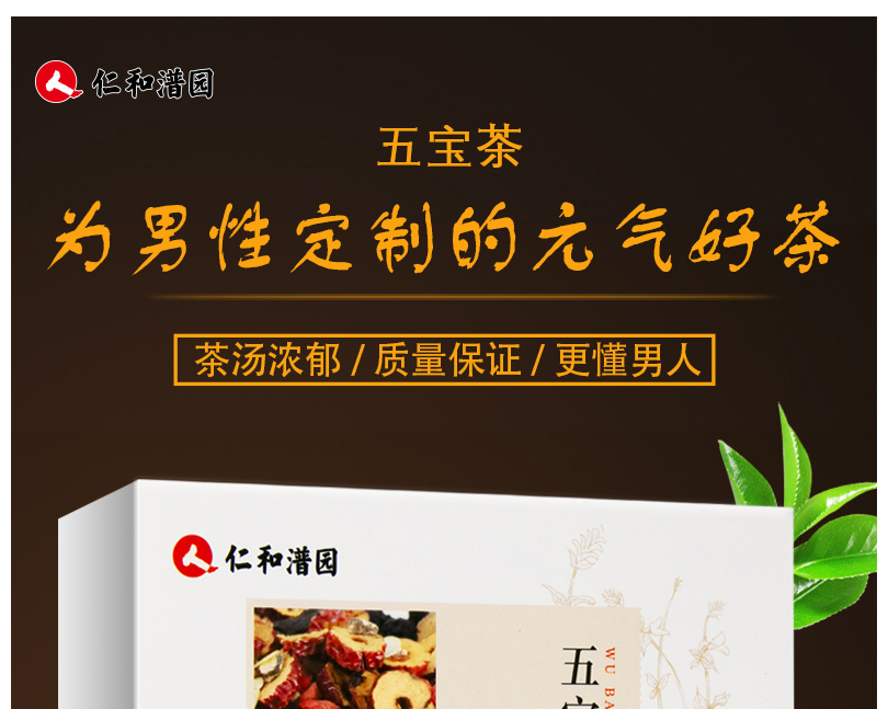 仁和 人参五宝茶 最懂男人元气黄精黑枸杞桂圆桑葚红枣茶男女熬夜茶补元气茶10g*10袋