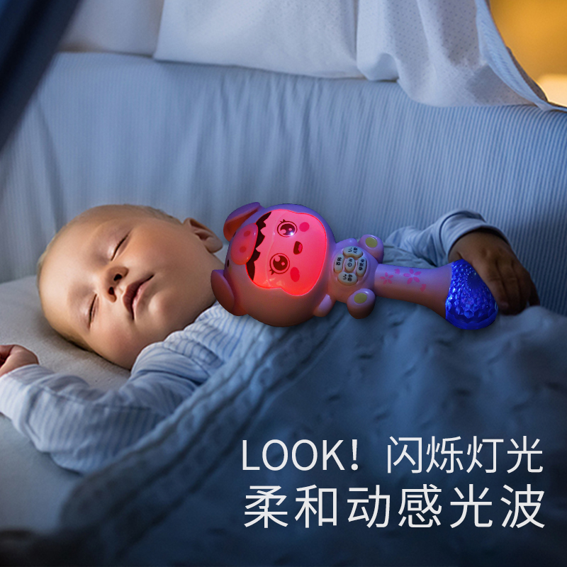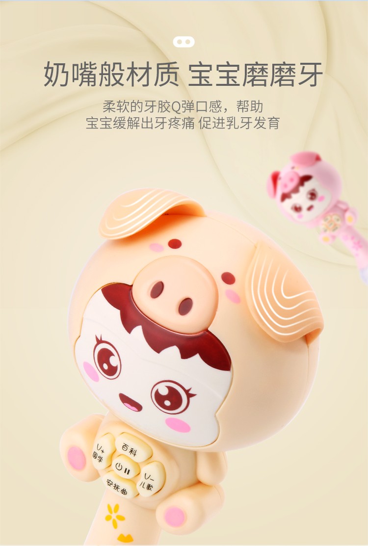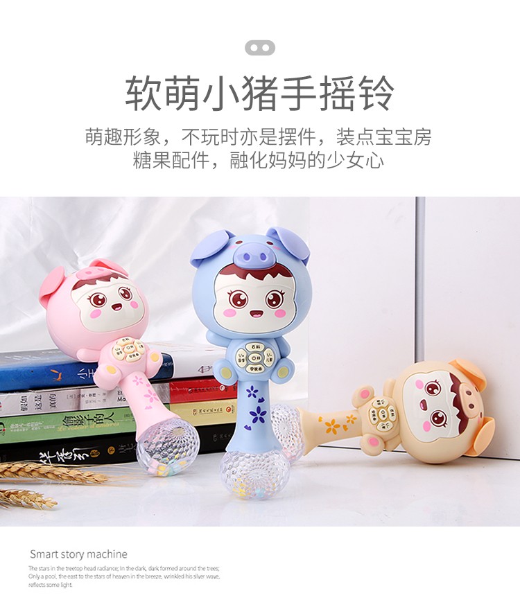 怀恩 爱唱歌讲故事多功能婴儿小猪萌摇铃 可啃咬新生儿宝宝抓握 粉色