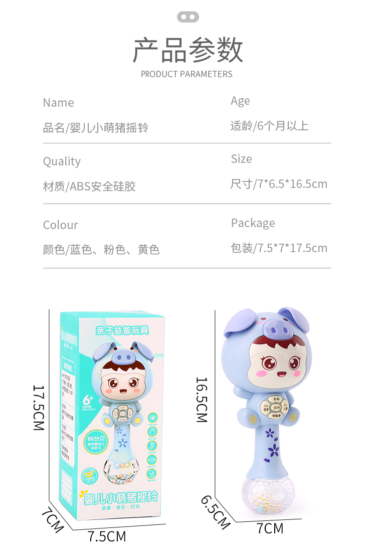 您所在的位置:首页 > 母婴用品  > 玩具 > 益智玩具  > 怀恩 爱唱歌讲故事多功能婴儿小猪萌摇铃 可啃咬新生儿宝宝抓握 粉色