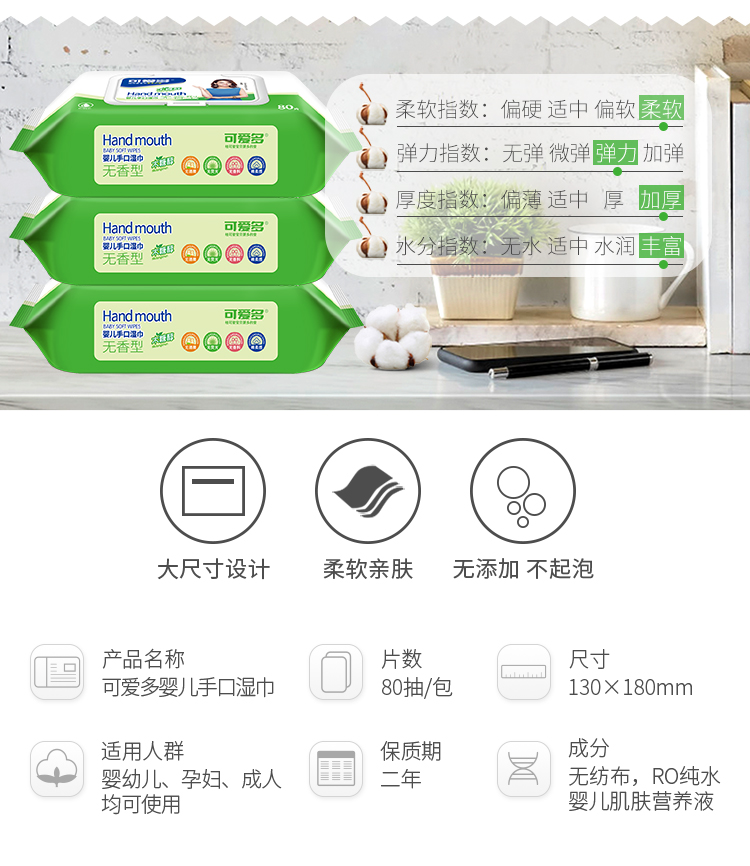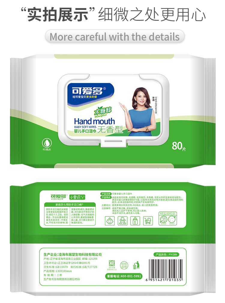 您所在的位置:首页 > 母婴用品  > 尿裤湿巾 > 婴儿湿巾  > 可爱多 木糖醇婴儿手口湿巾带盖装80抽/包*10包