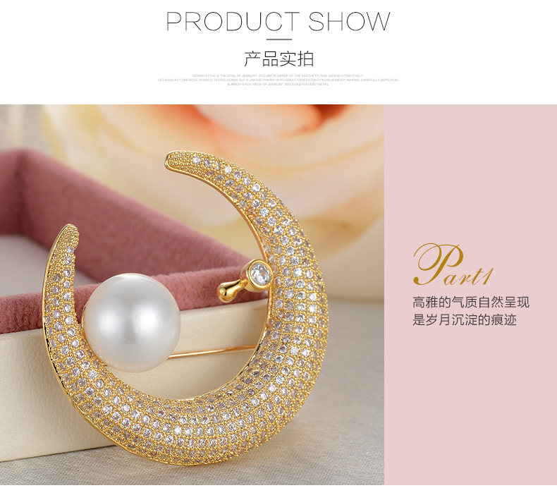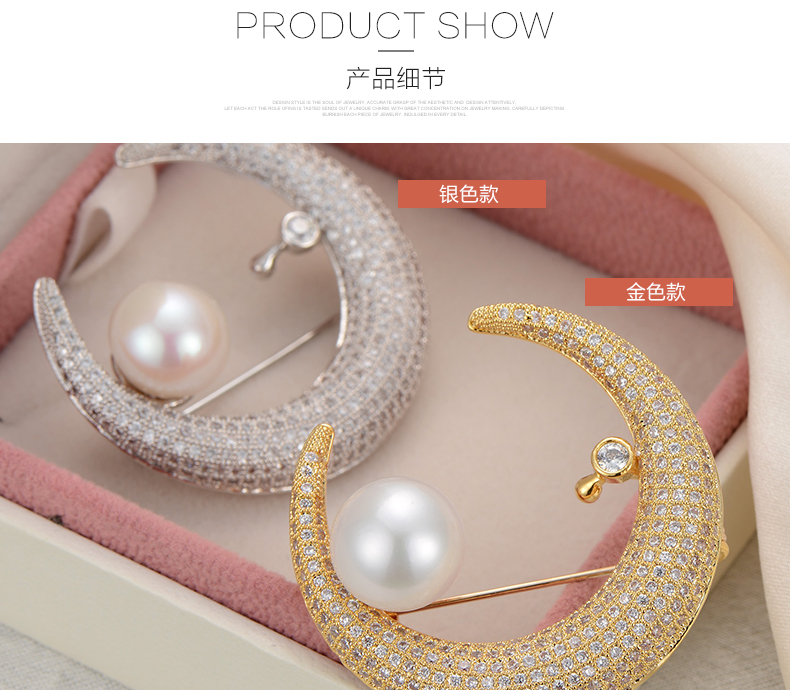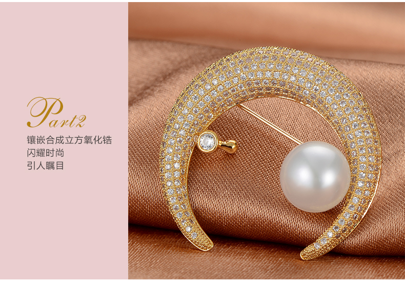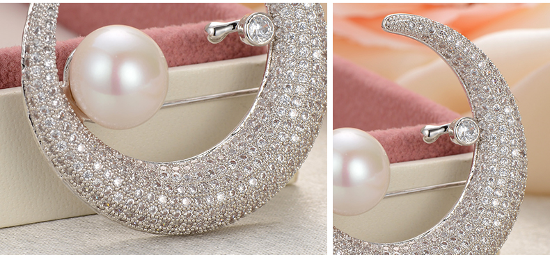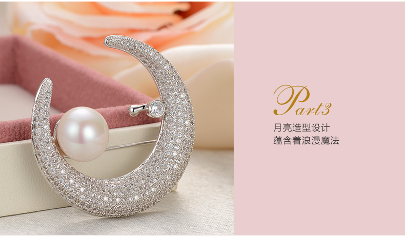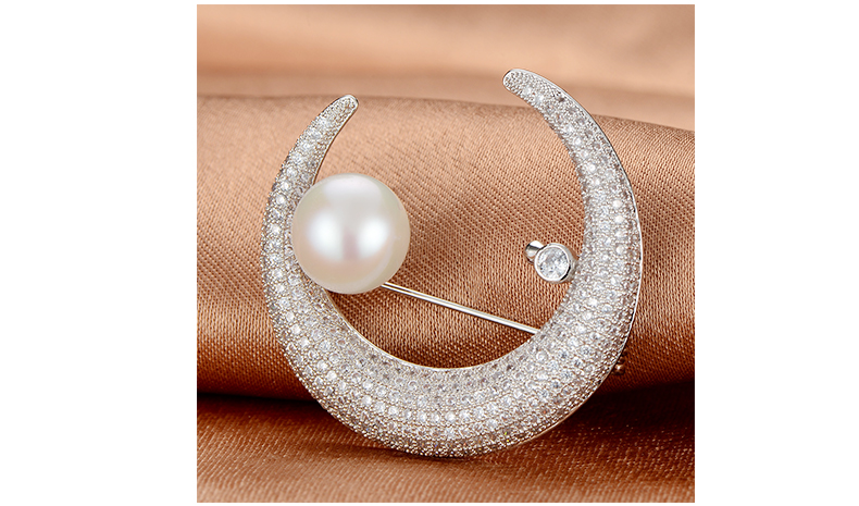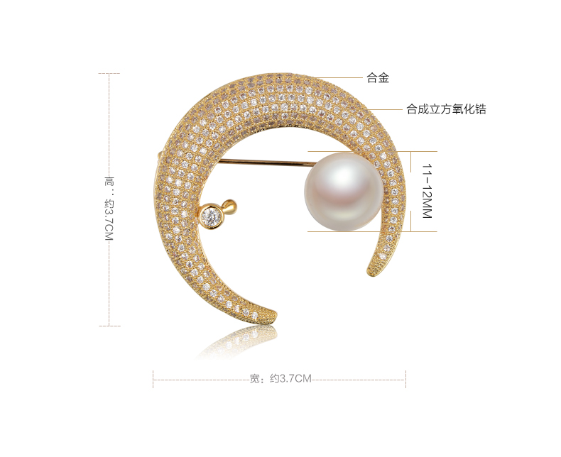 京润珍珠 白月光合金镶淡水珍珠胸针11-12mm白色馒头形珍珠时尚女珠宝