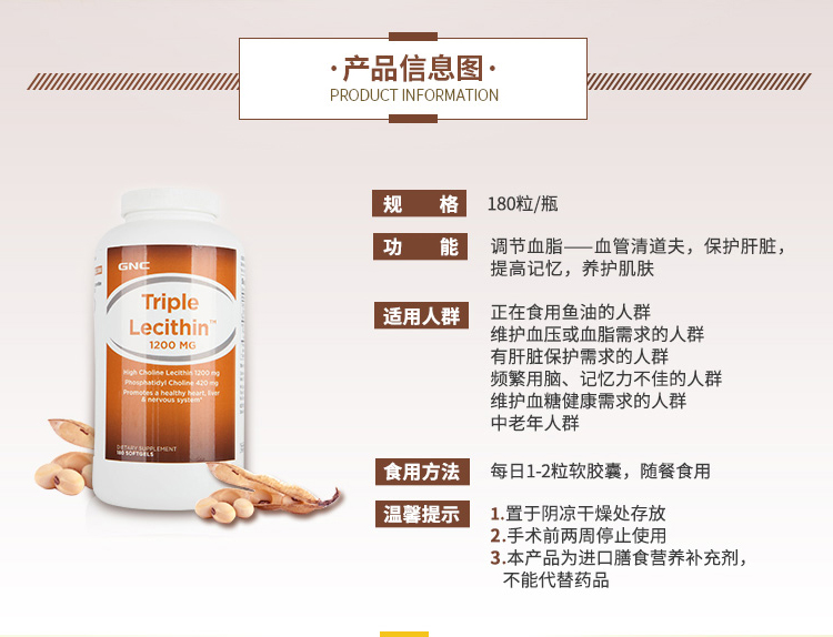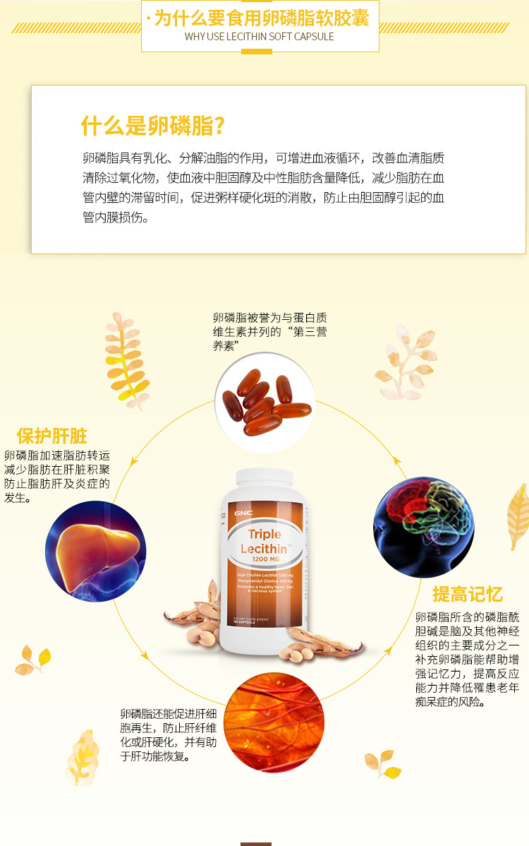 【精品推荐】健安喜三倍卵磷脂软胶囊(180粒)