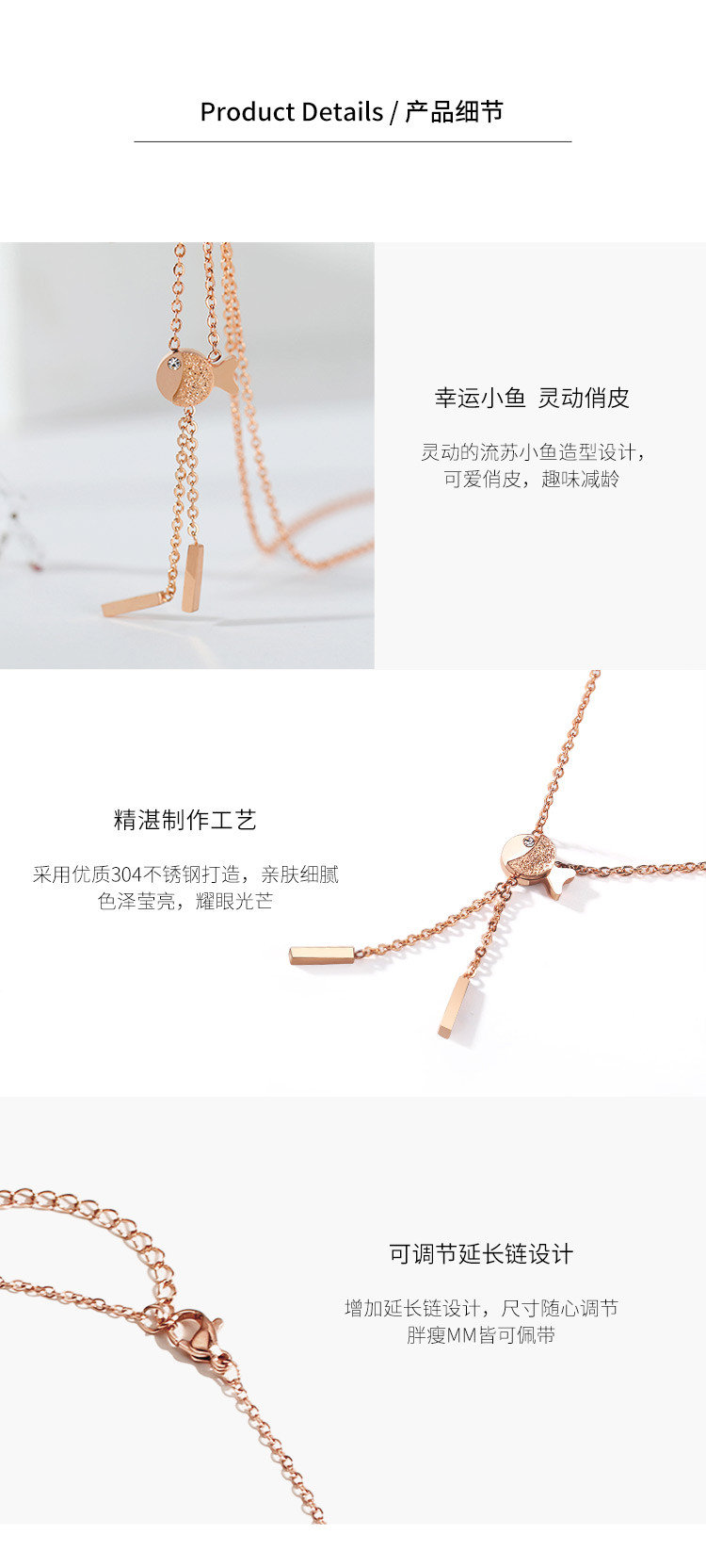 GL时尚项链女潮网红森系吊坠幸运饰品幸运小鱼锁骨链GLAN001HH1
