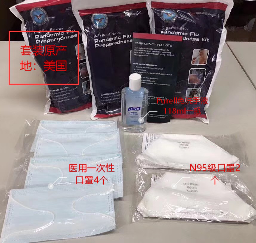美国直邮 Dod beneficiaries 肺炎流感病毒个人防护套装 7件套
