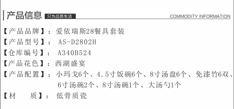 爱依瑞斯西湖盛宴28头餐具套装AS-D2802H