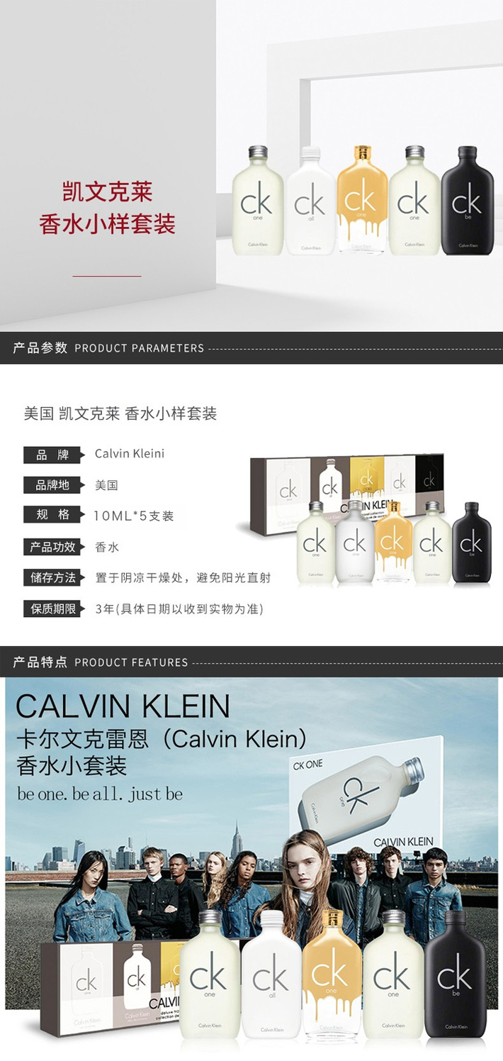 您所在的位置:首页 > 美妆护肤  > 香水彩妆 > 香水  > 美国Calvin Klein 卡文克莱 CK香水小样套装五件套 男士女士中性香水 10ml*5