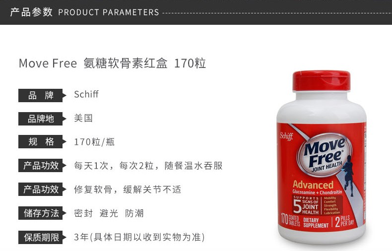Move Free维骨力氨糖软骨素片 红瓶170粒
