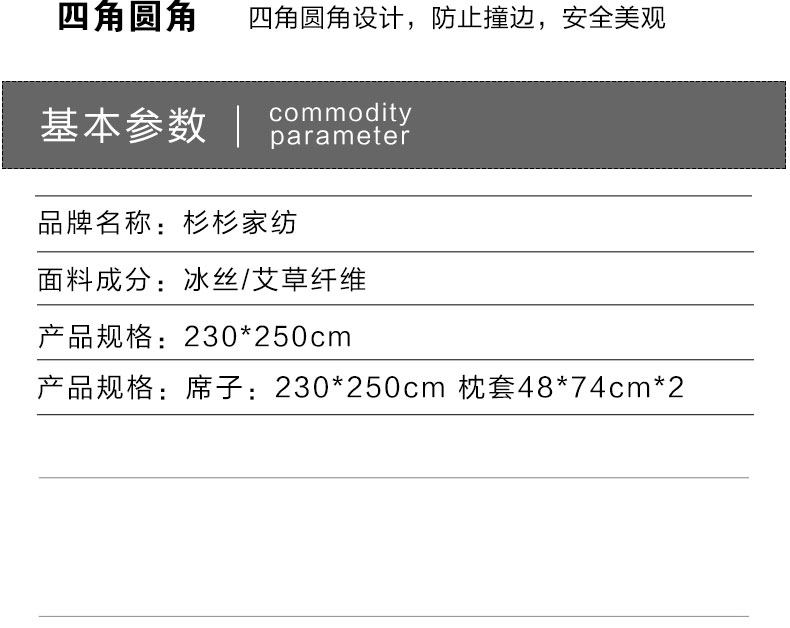 杉杉家纺 艾香冰丝席三件套QFS-12065 规格:席子230x250cm 枕套48x74cmX2