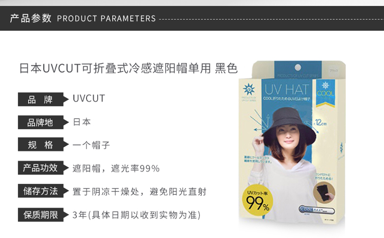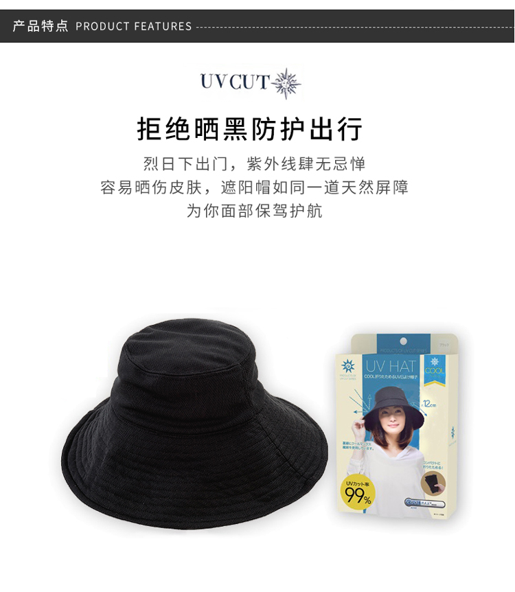 日本UVCUT丽意姿 可折叠式冷感遮阳帽单用 黑色
