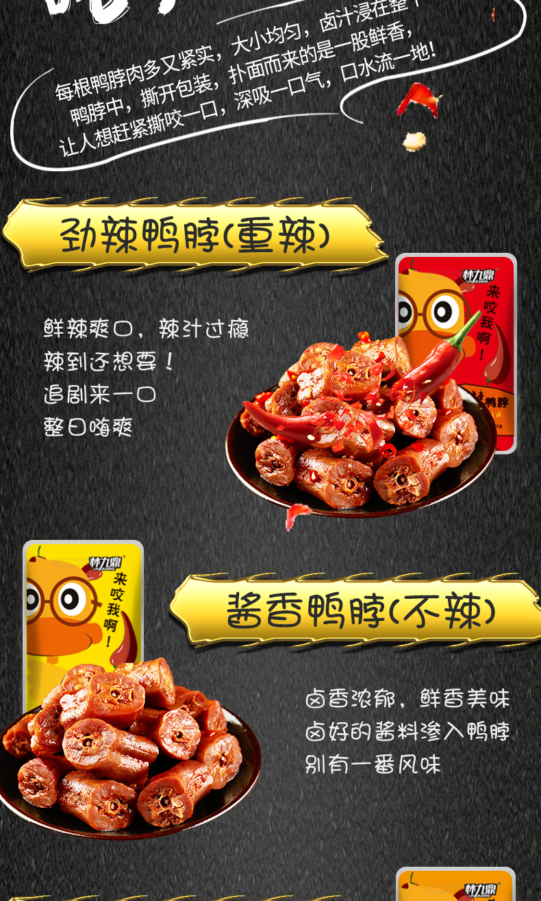 您所在的位置:首页 > 休闲食品  > 休闲食品 > 休闲零食  > 花蜜家 鸭脖子 香辣麻辣酱香劲辣4种口味绝味鸭脖即食零食小吃 500g/箱