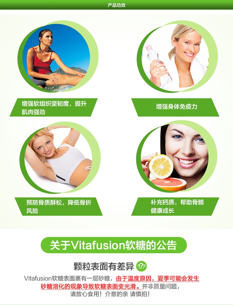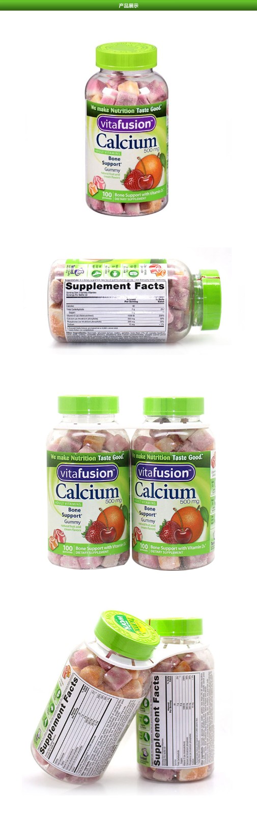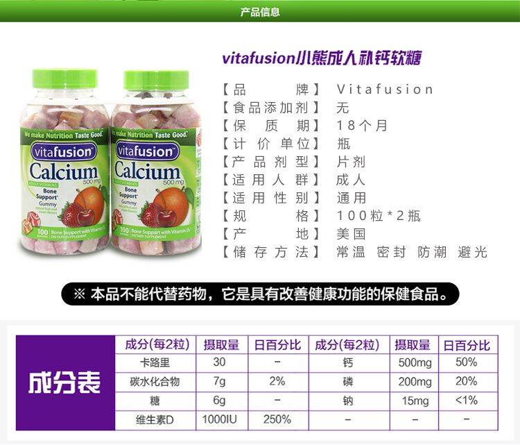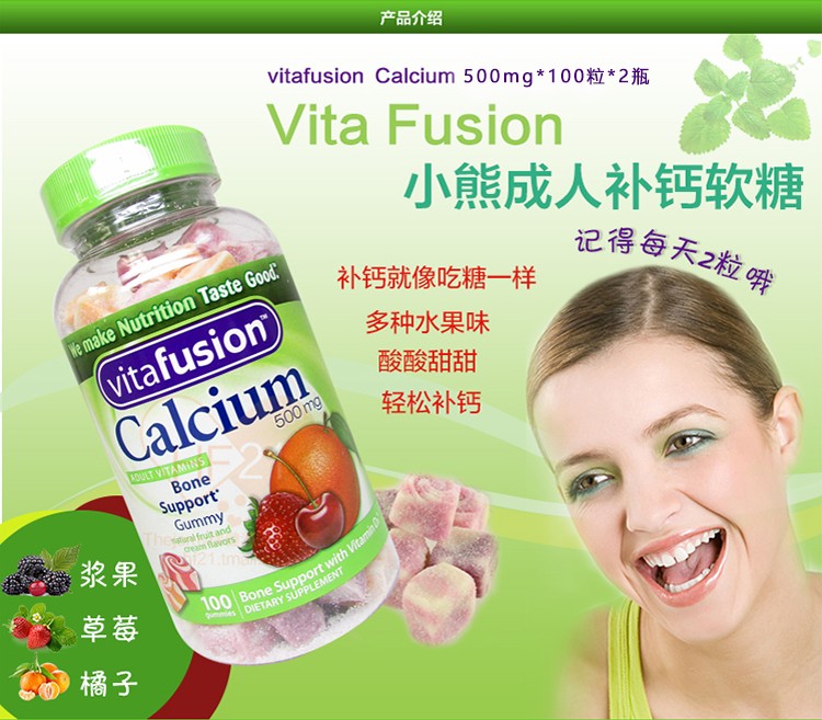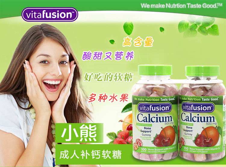 【美国直邮】Vitafusion熊宝宝钙+VD成人青少年软糖钙水果味轻松补钙100粒*2瓶