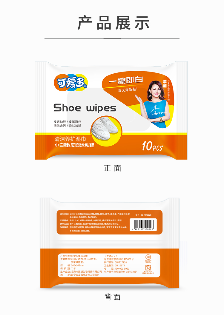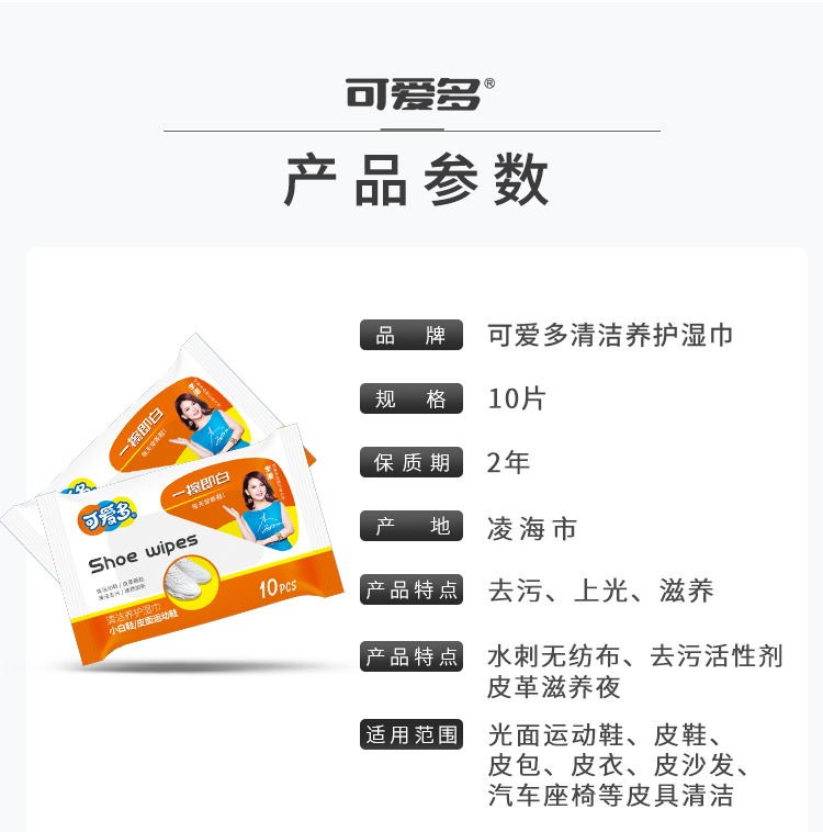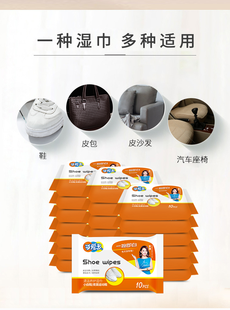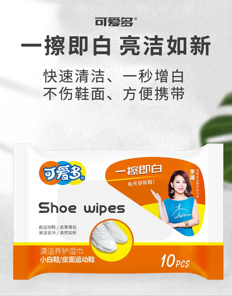 可爱多运动鞋擦鞋湿巾小白鞋清洁 一次性擦鞋湿巾10抽/包便携装
