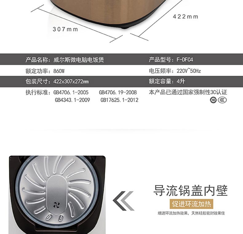 【授权商品】英国finsybo威尔斯微电脑电饭煲 F-DFC4 4L