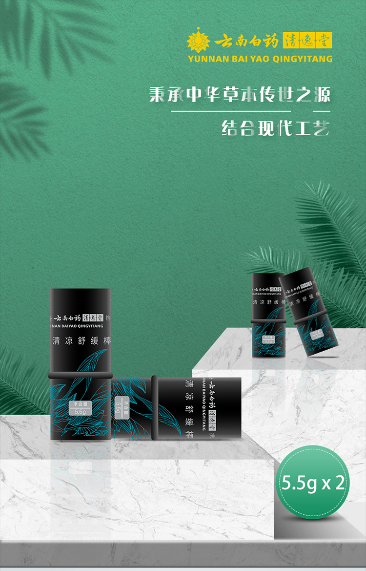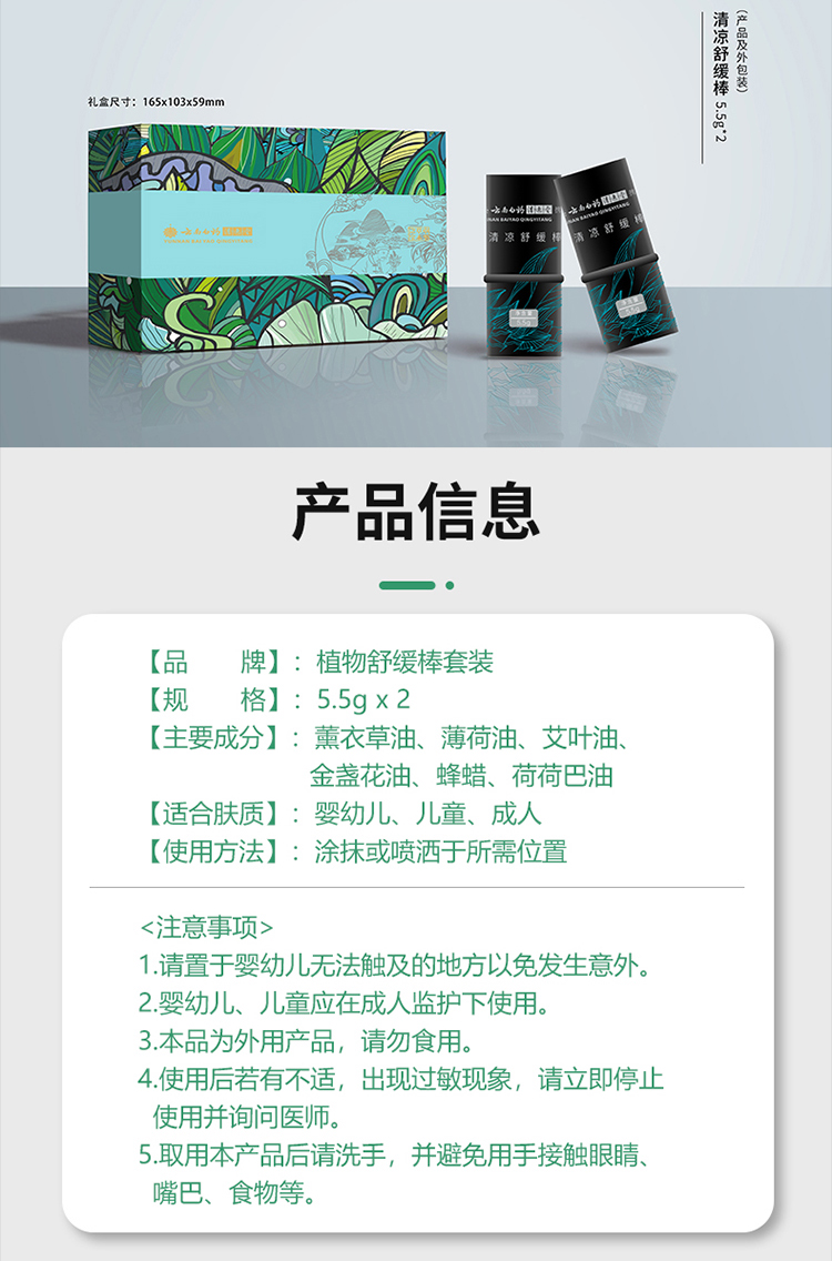 云南白药携爽清凉舒缓棒套装套盒 清凉舒缓棒(2只/盒,5.5g)YYQ-504驱蚊防蚊