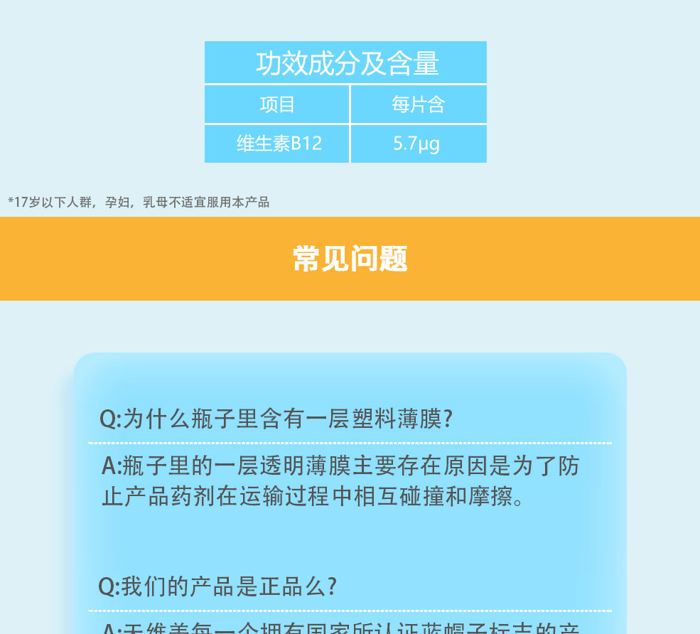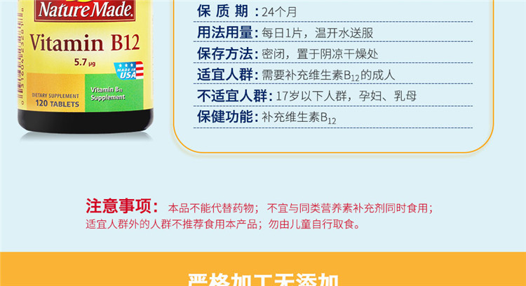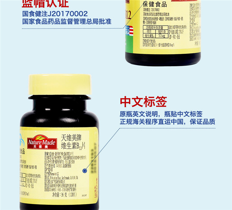 美国Nature Made 天维美牌维生素B12片(120片)