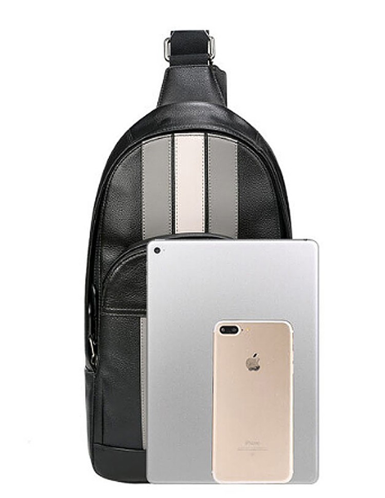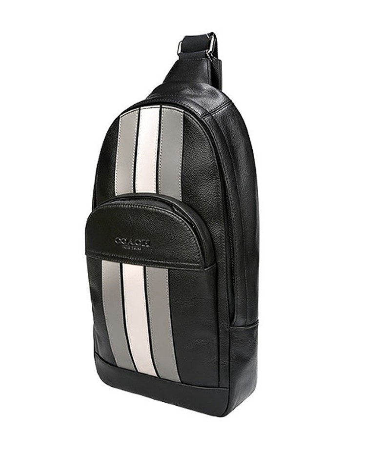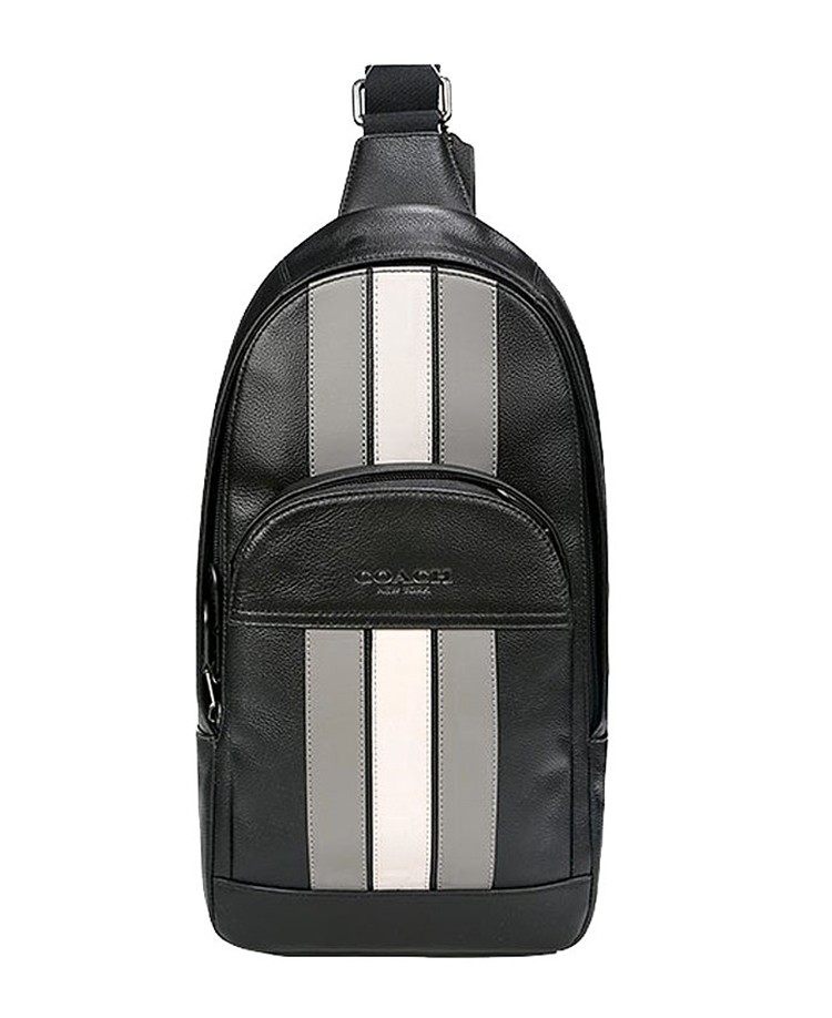 【美国直邮】COACH蔻驰男包牛皮竖条休闲胸包斜挎包F73344 黑色灰白条