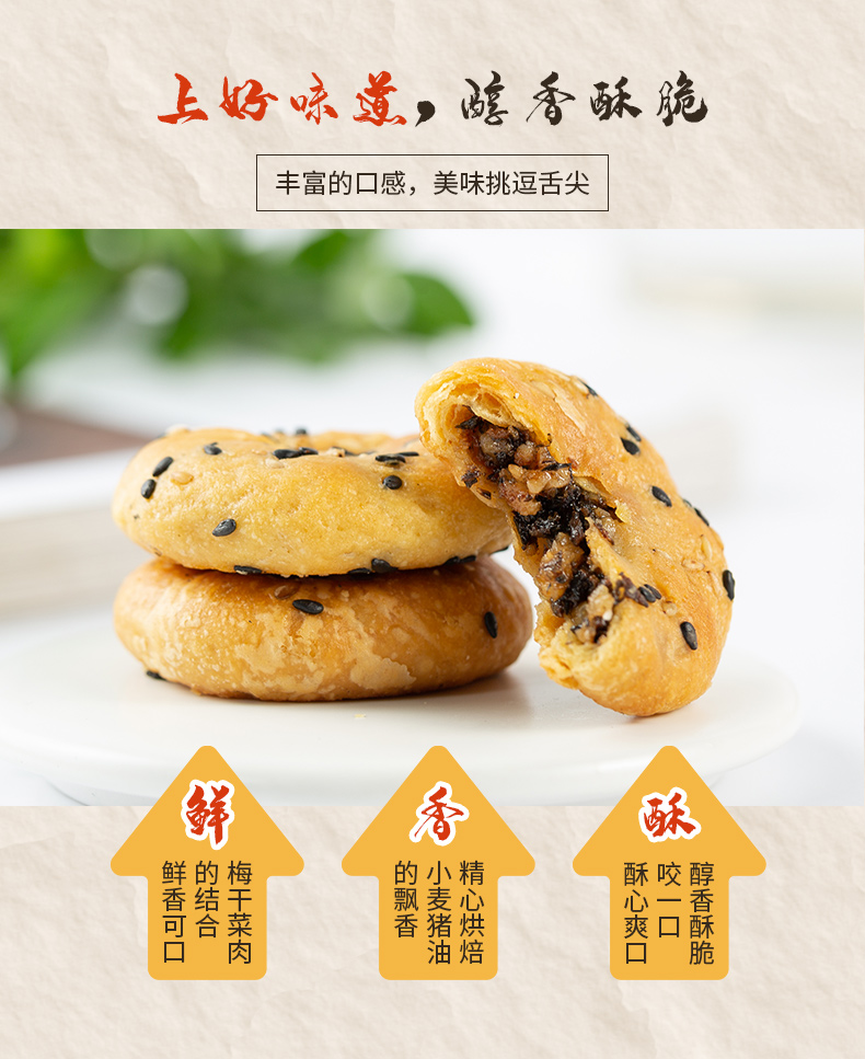 您所在的位置:首页 > 休闲食品  > 休闲食品 > 膨化食品  > 上好旺金华酥饼正宗浙江特产梅干菜肉黄山烧饼传统糕点心小吃零食500g【原味】