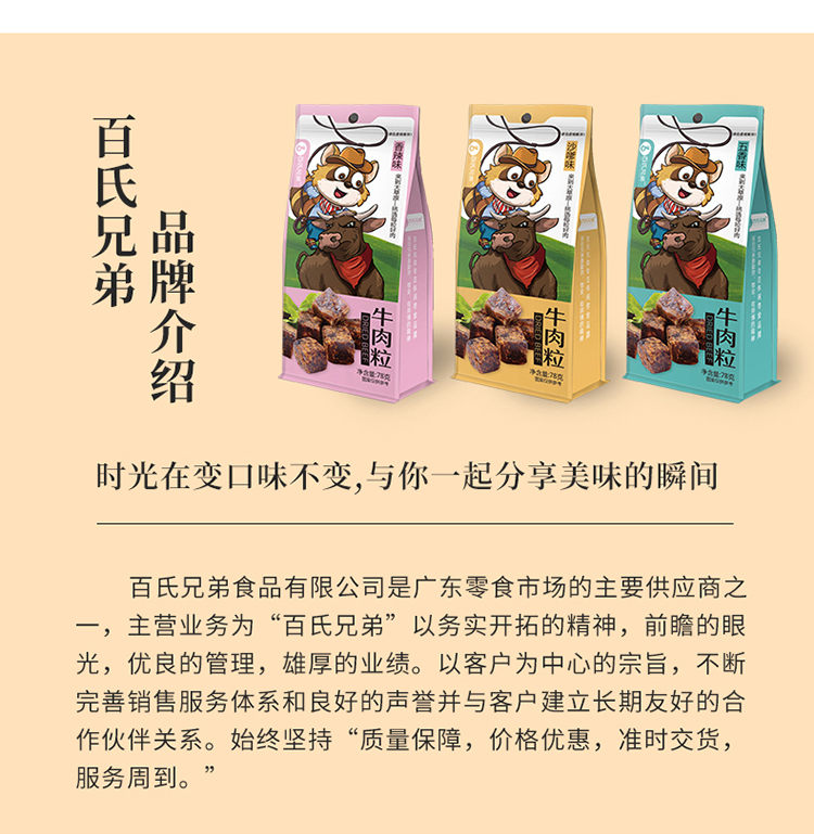 【授权产品】百氏兄弟 牛肉粒三件装78g*3(沙嗲味+香辣味+五香味)