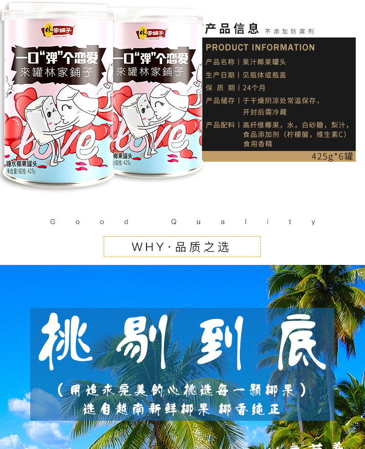林家铺子 糖水椰果425g/罐 进口水晶椰果Q弹爽滑软糯