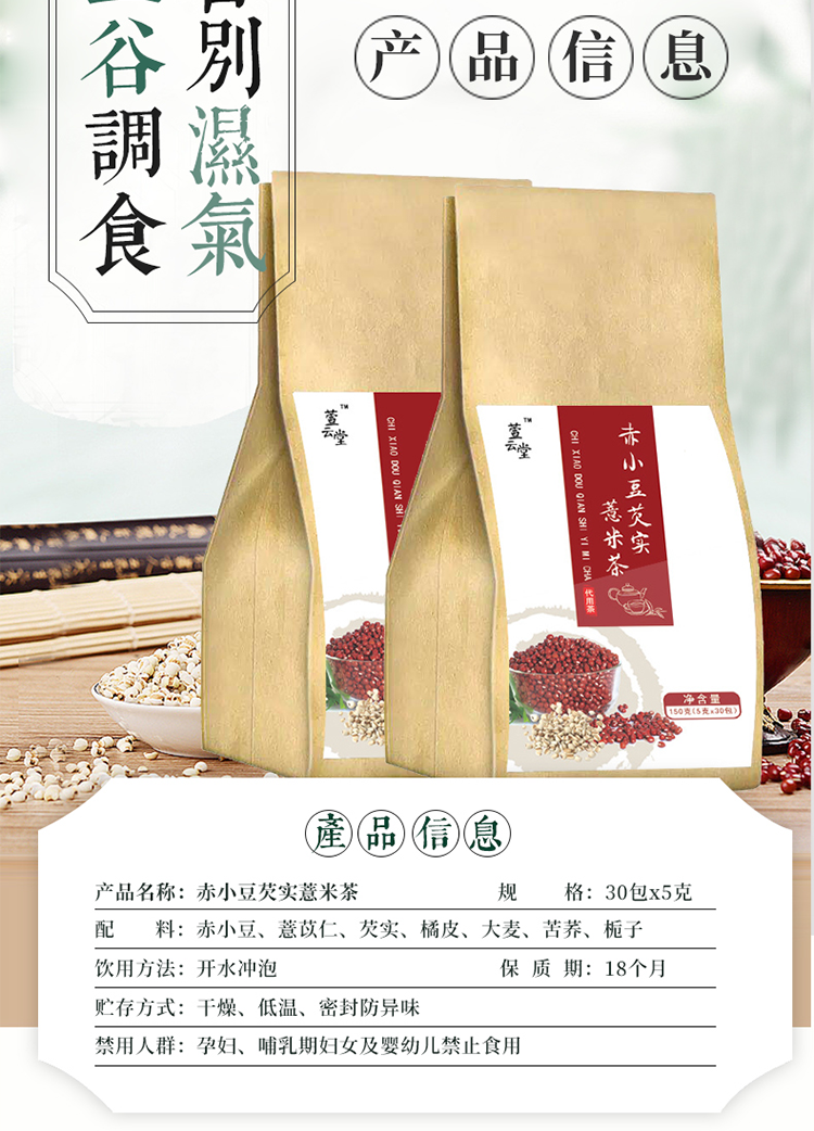 中国萱云堂赤小豆芡实薏米茶30包*5g/袋