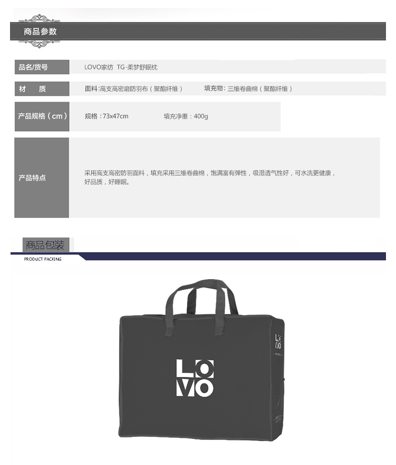 您所在的位置:首页 > 家居日用  > 床上用品 > 枕头  > LOVO家纺 TG-柔梦舒眠枕VPF7313-4 规格73x47cm
