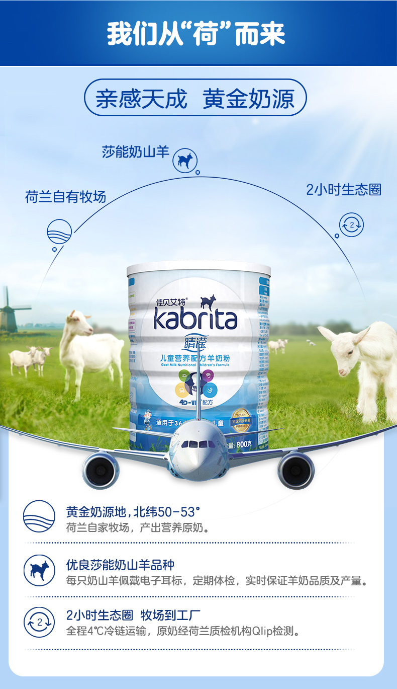 佳贝艾特睛滢儿童学生成长配方羊奶粉4段3-12岁800g