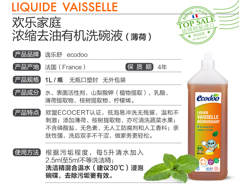 逸乐舒欢乐家庭浓缩去油洗碗液1L