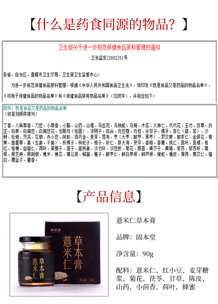 固本堂红豆薏米仁草本膏90g/瓶