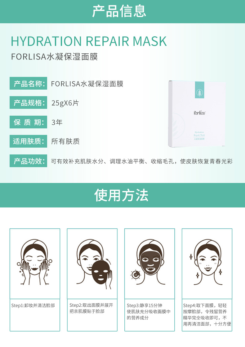菲丽洁水凝保湿面膜6片装 焕颜补水保湿孕妇可用正品专用怀孕