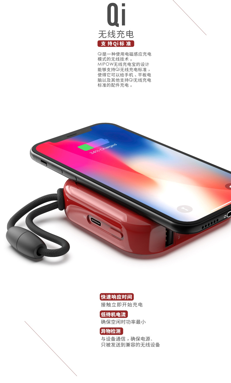 国内贸易 MIPOW苹果11 Pro Max无线充电宝iPhoneXs max无线充电器移动电源QI无线充电器SPX01W 10000毫安 黑色