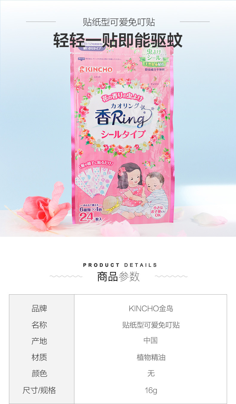 日本 金鸟 KINCHO 花香驱蚊贴 24枚