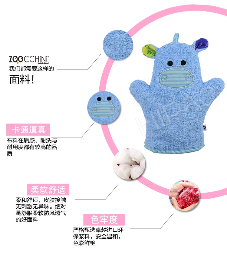 美国Zoocchini 纯棉洗澡小手帕 河马亨利