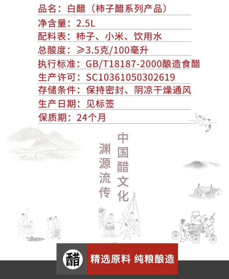 恒然四季 白醋 2.5升/瓶