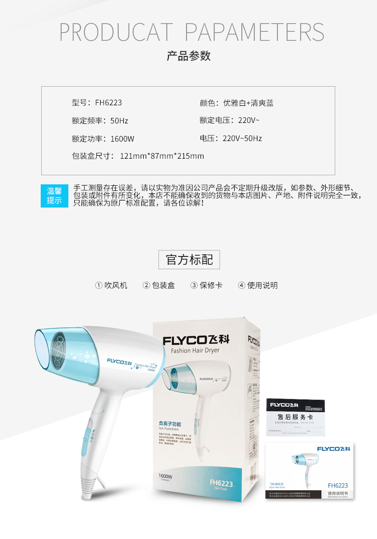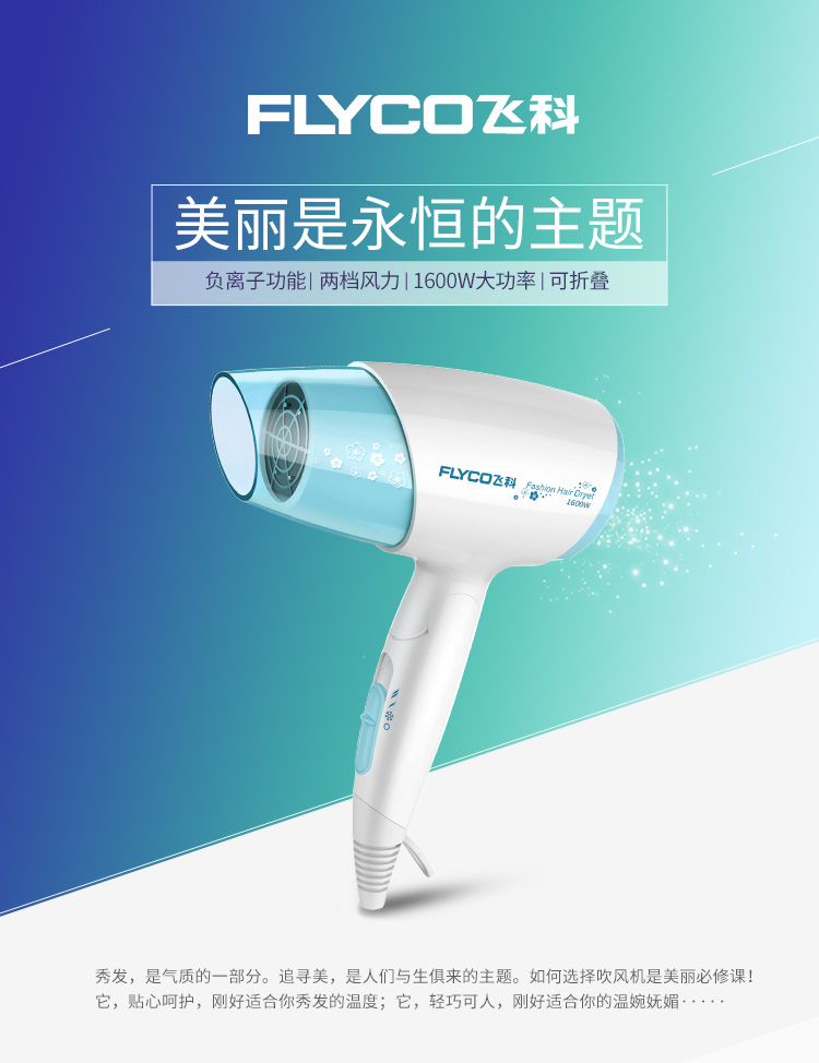 您所在的位置:首页 > 家用电器  > 个护健康 > 电吹风  > 飞科(FLYCO)电吹风 家用静音大功率吹风筒可折叠便携式吹风机 FH6223