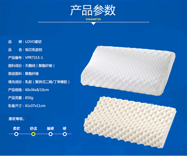 LOVO家纺 贴芯乳胶枕VPR7315-1 规格61x37x11cm