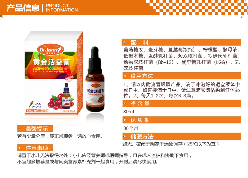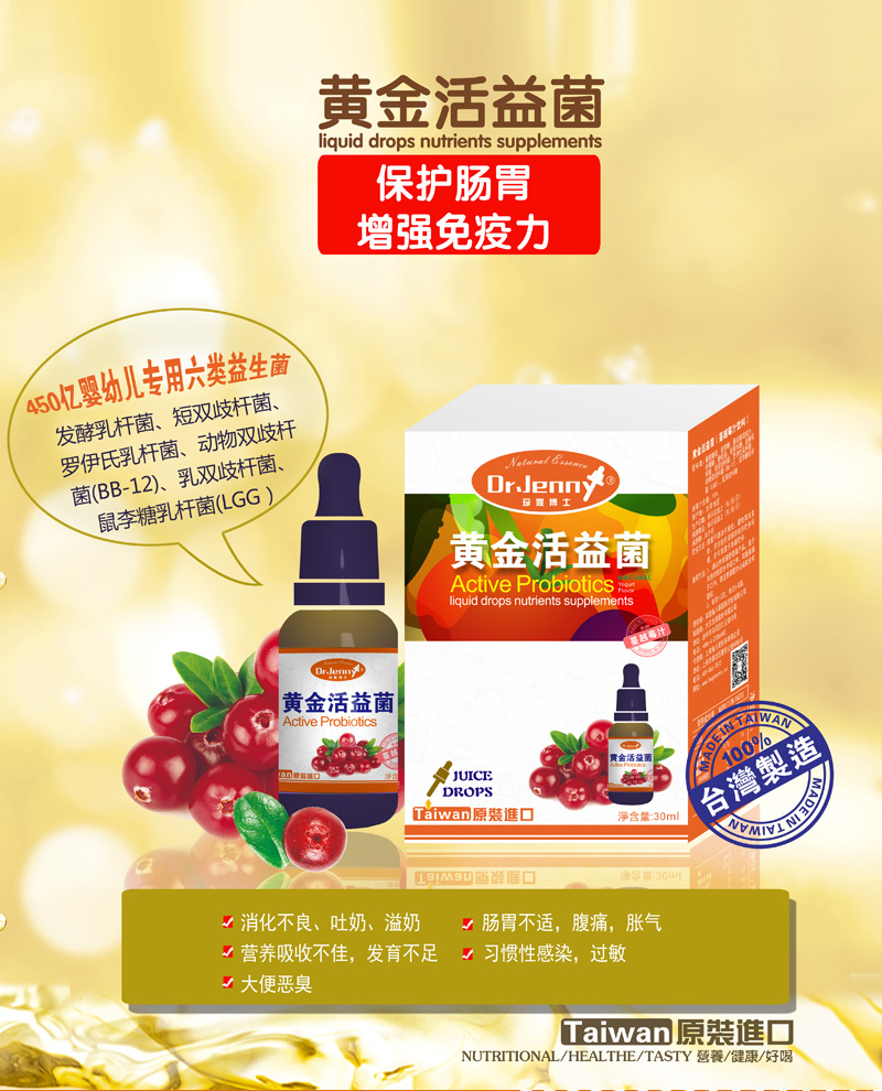珍妮博士黄金活益菌台湾原装进口30ml/瓶
