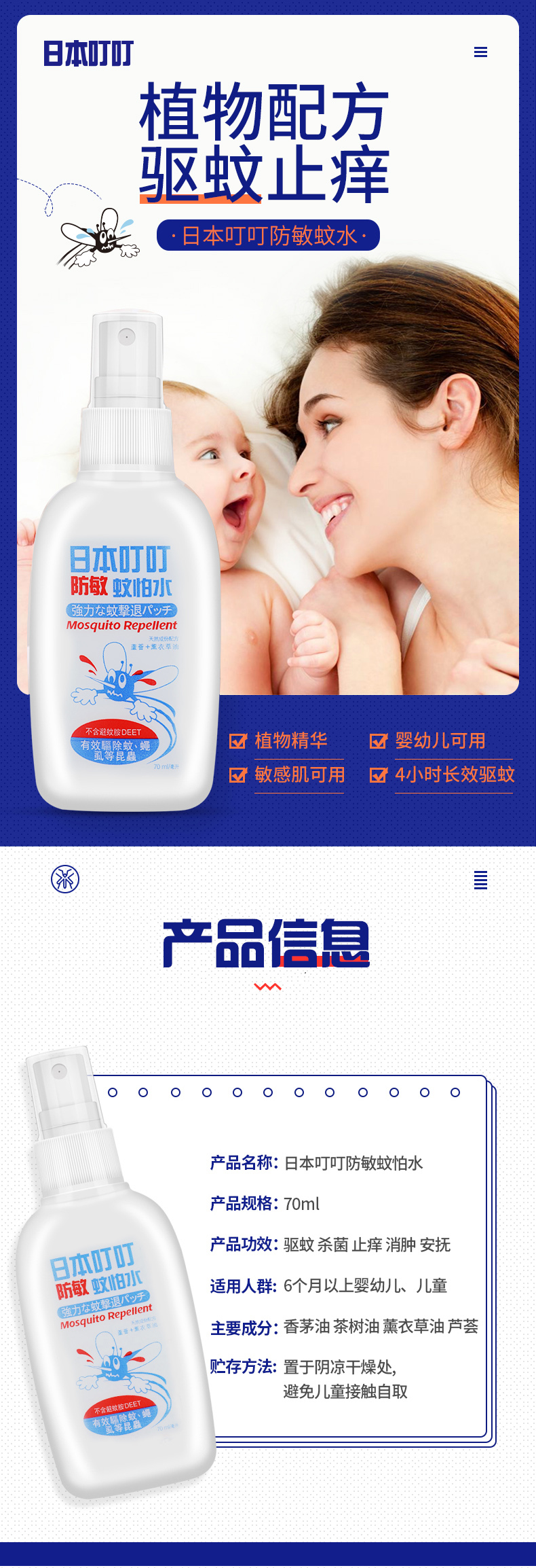 【官方授权 带防伪】日本叮叮驱蚊三件套(蚊怕水70ML+止痒膏30G+驱蚊贴24片)