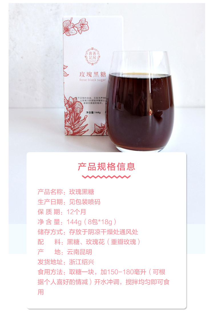 喜善花房玫瑰黑糖144g/盒