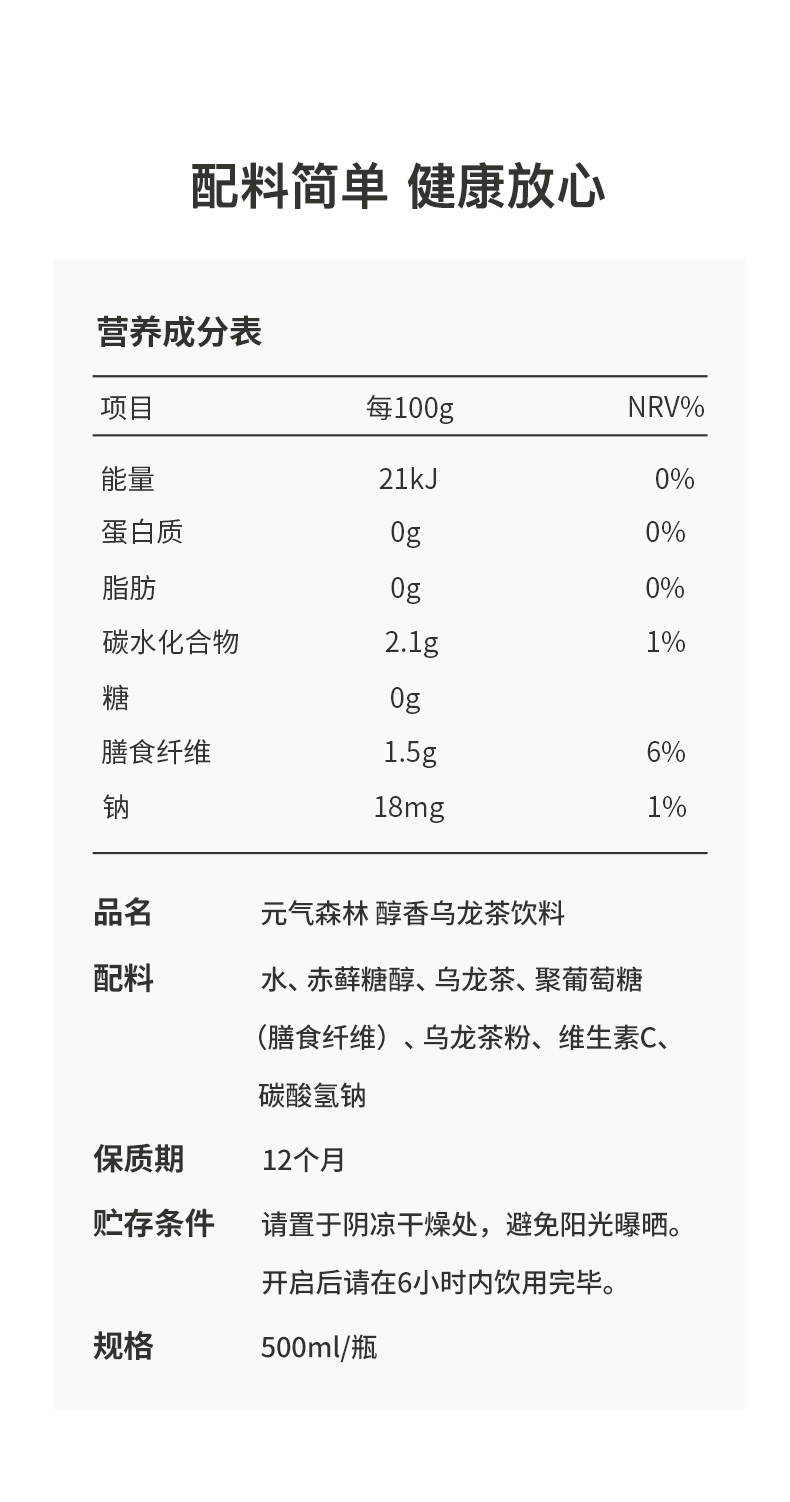 元気森林 无糖0脂醇香 醇香燃茶乌龙茶饮料 500ml*5瓶